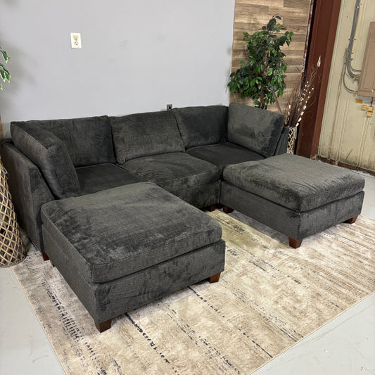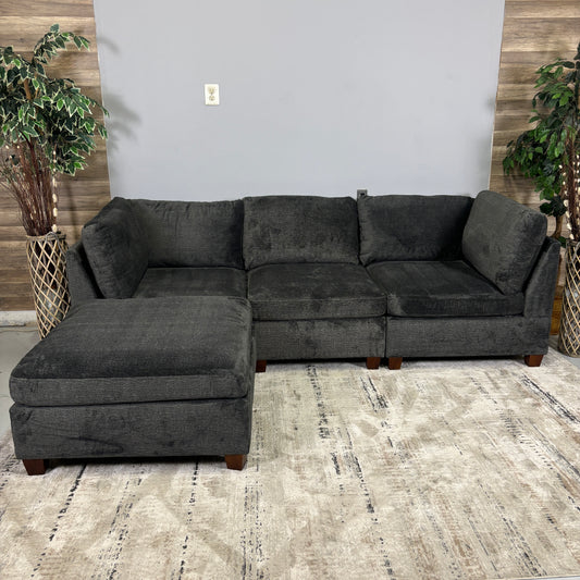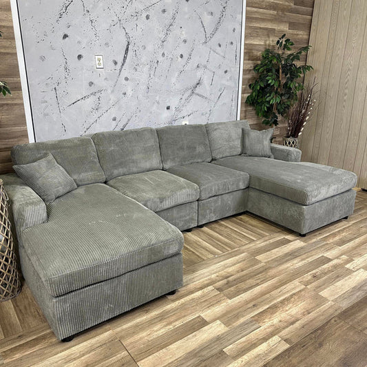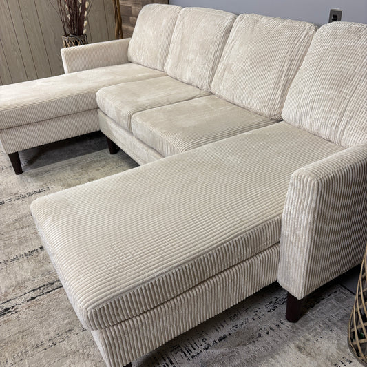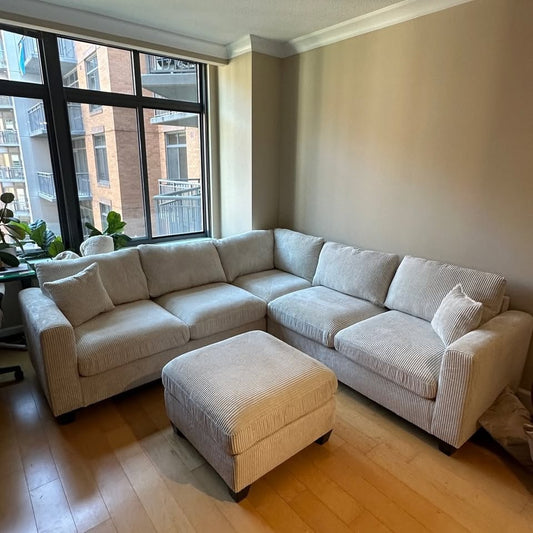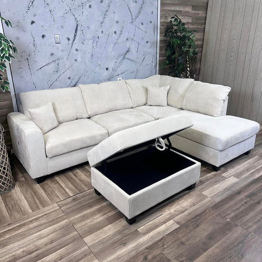 Beige Corduroy Sectional With Storage Ottoman & USB Port