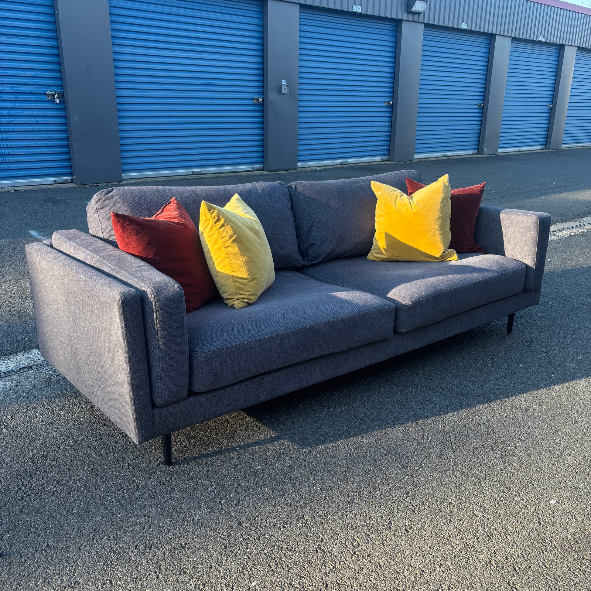 Modern West End sofa from American Signature with tall black legs. Perfect for an apartment and lightweight to move. In great condition and all cushion covers are removable and washable.